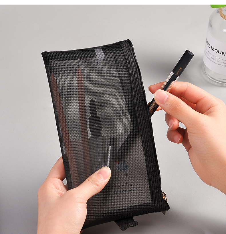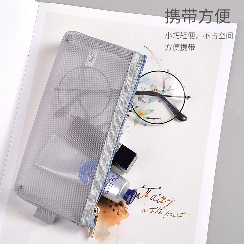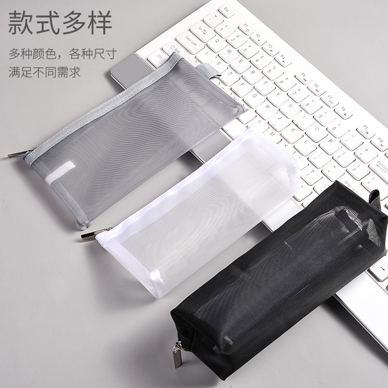 Grid pencil bag Simple translucent mesh pencil bag Male and female students exam large capacity zipper stationery bag Middle and high school school supplies storage bag Korean small fresh primary school pencil box