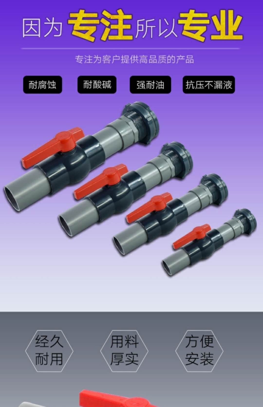 pvc corrosion protection plastic 4 points valve drain water drain complete set of high temperature resistant wire tooth connection switch in-line ball valve-Taobao