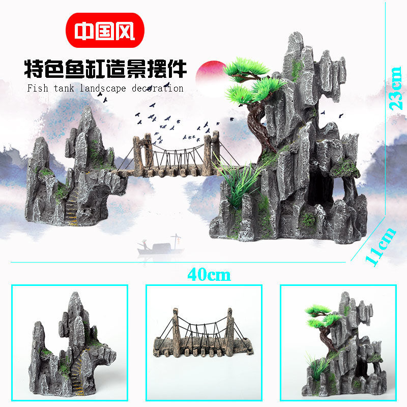 Fish tank False Mountain View small mini Small fish tank Decoration Stone plan Scenery Fake Mountain Stone Plastic Imitation