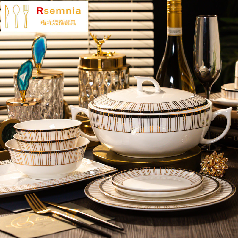 Rsemnia Jingdezhen ceramics high-end simple bone china tableware set light luxury European dishes household dishes
