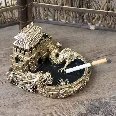 Rockery plant with stone grass landscaping ashtray (damaged reissue) retro Chinese Wind Dragon Great Wall home Guest