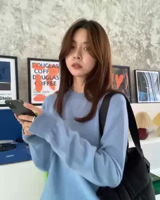 LIL CHER round neck wool sweater women 2021 Spring and Autumn New loose interior with solid color sweater base shirt