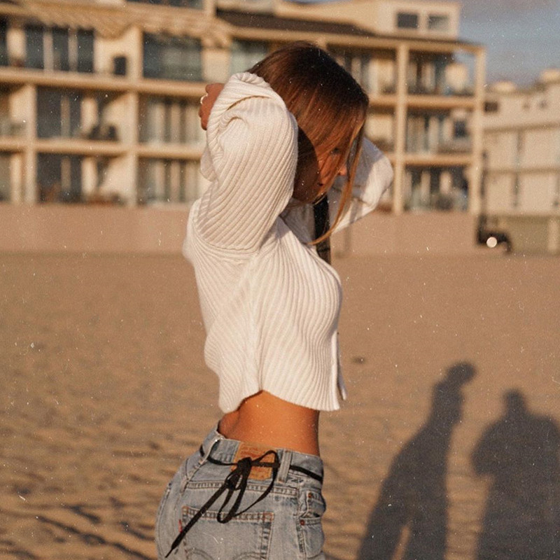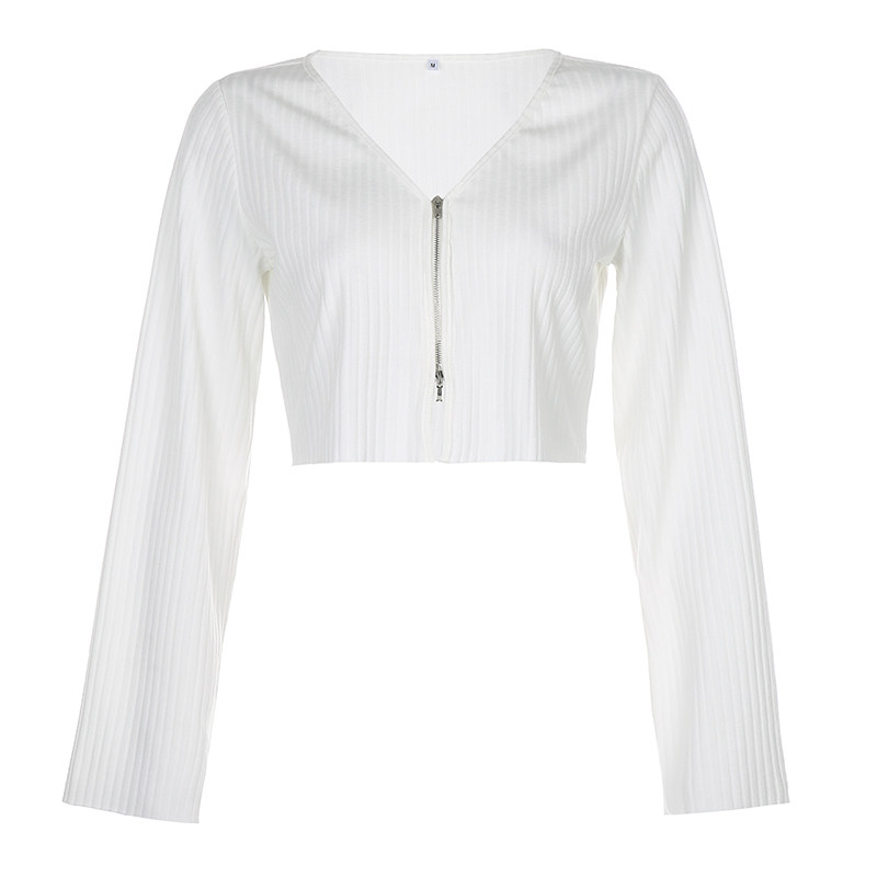 H home and America Sexy V neckline double switch Necklace Knit Pit Strip Blouses Woman Loose Micro Laser-long Sleeve Pure Color Cardiovercoat Jacket