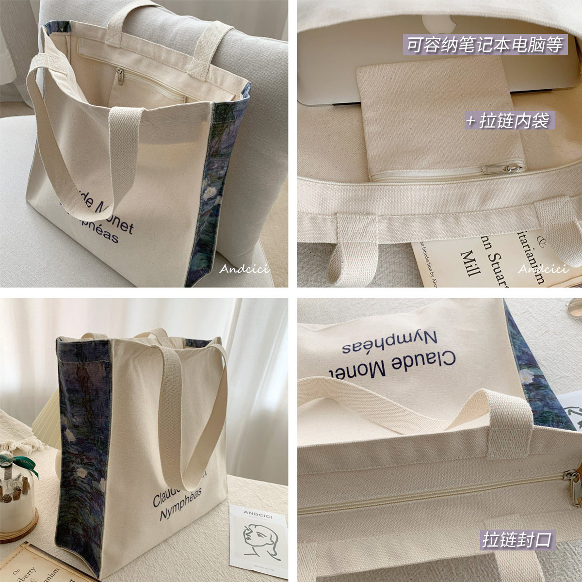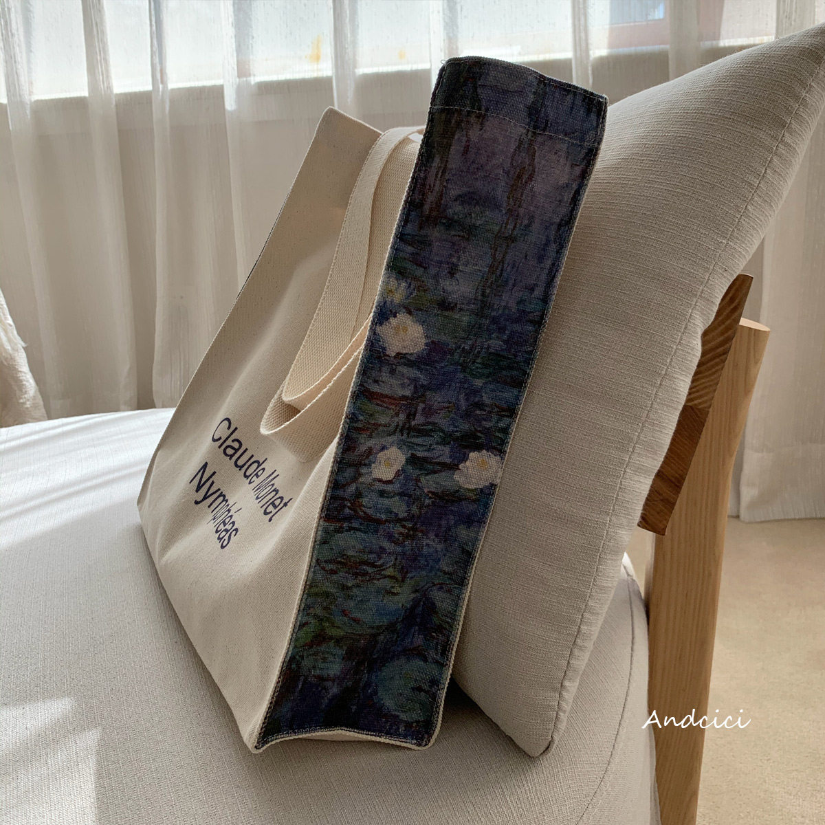 ANDCICI ~ Monet oil painting "Water Lily" shoulder bag canvas bag tote backpack student schoolbag big shopping bag