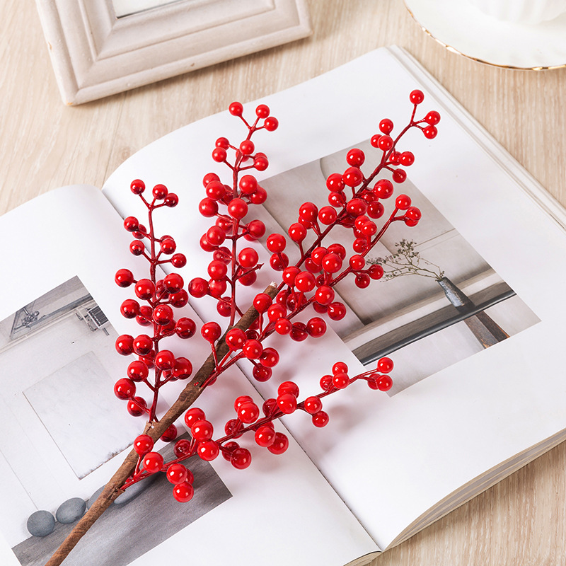 Simulation of five-fork small red fruit foam fake flower home living room decoration wedding decoration Christmas fruit berries