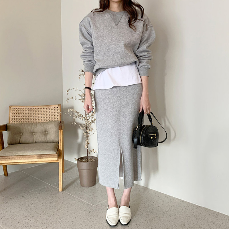 Grey thick cotton T grey half body dress S grey thick cotton T grey half body dress M grey thick cotton T grey half body dress L grey thick cotton T grey half body dress XL light card sweater light card