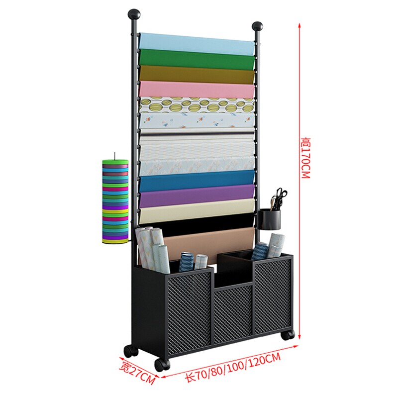 New wrought iron flower wrapping paper rack flower shop display rack ribbon ribbon storage layer shelf scarf car film wallpaper rack