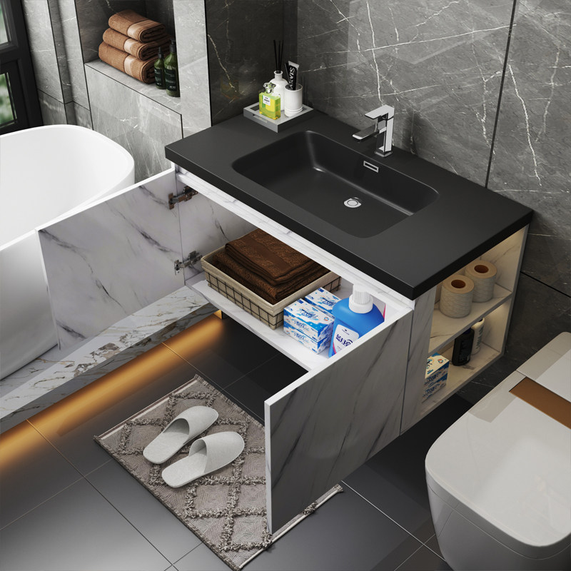 Modern simple bathroom room cabinet combination bathroom sink Face wash sink set Light luxury rock plate one-piece basin