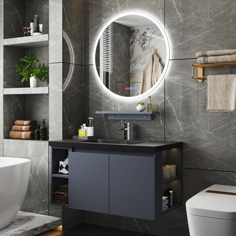 100CM round mirror intelligent defogging section-marble white nano one-piece rock basin