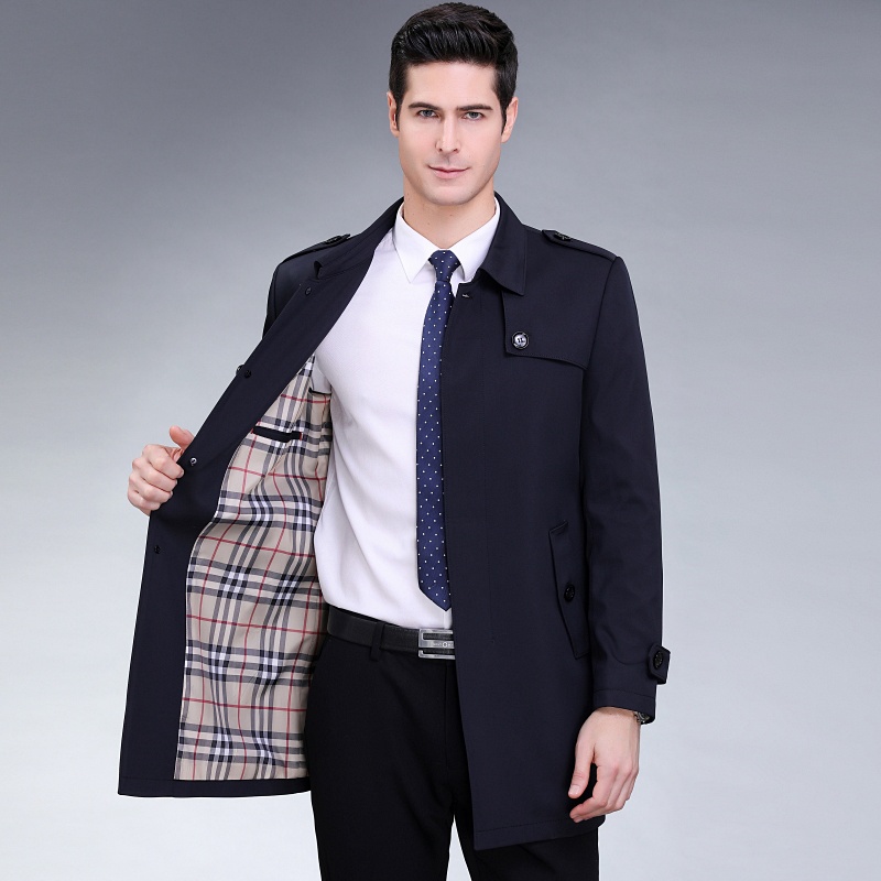 Pilkaden men's windbreaker medium and long version 2020 spring and autumn middle-aged business casual lapel daddy outfit large size jacket