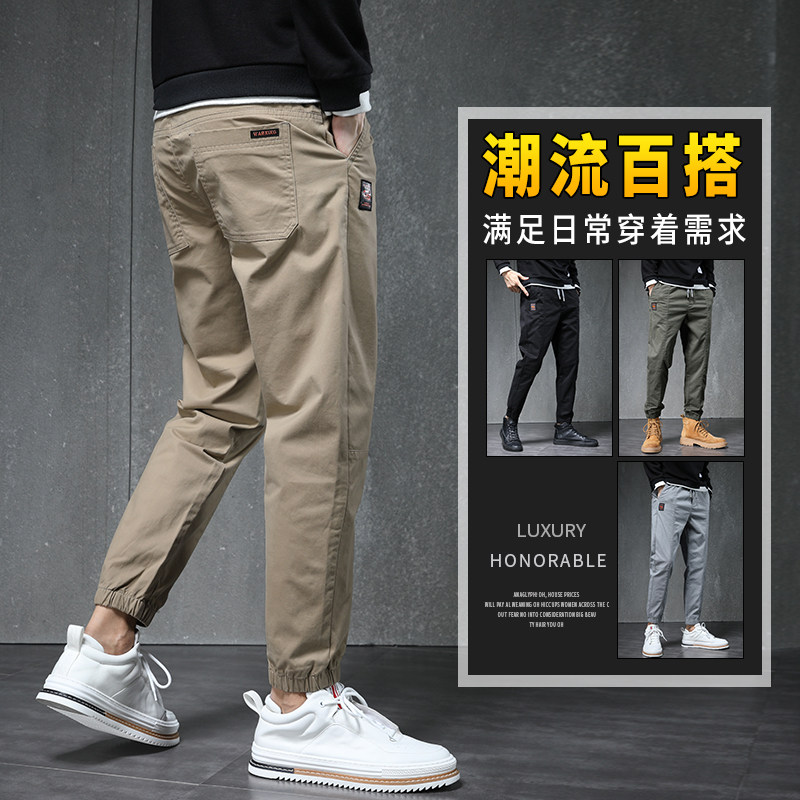 Spring Fall Pure Cotton Bouquet Leggings Pants Men Casual Pants Trends 100 Hitchhiking Harun Boys Yuppie Good-looking Pants