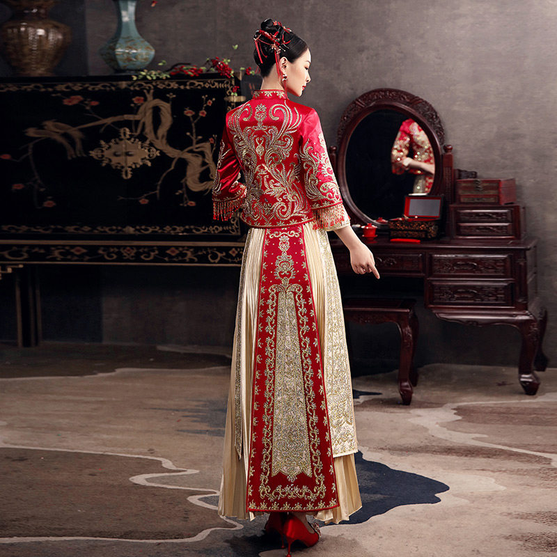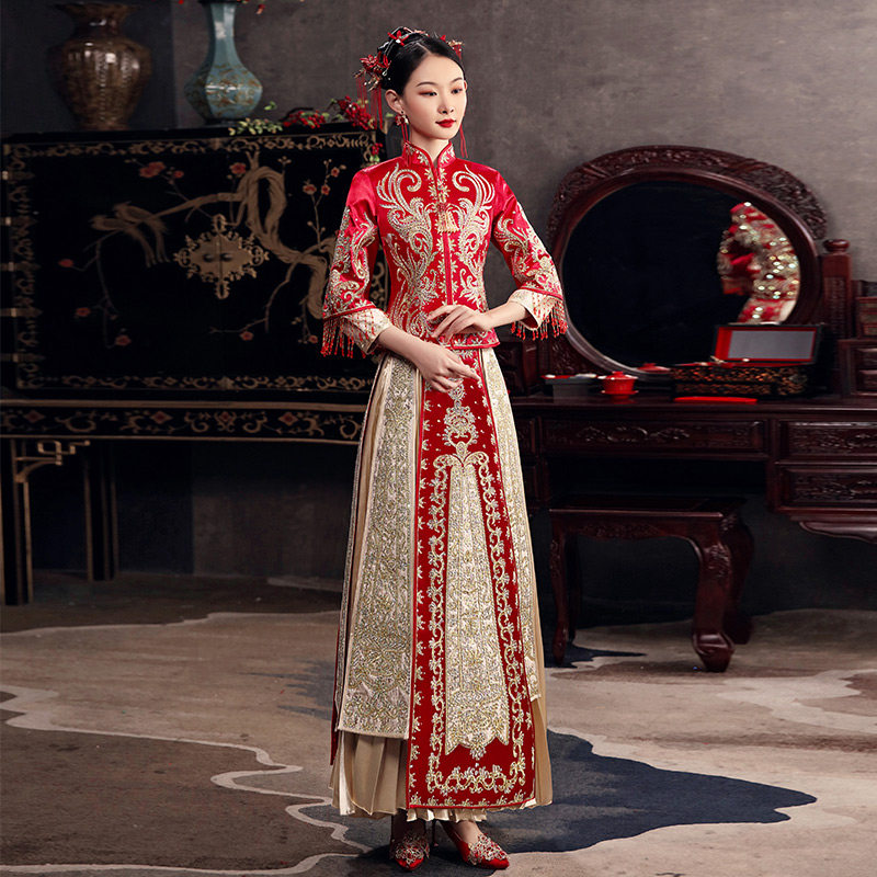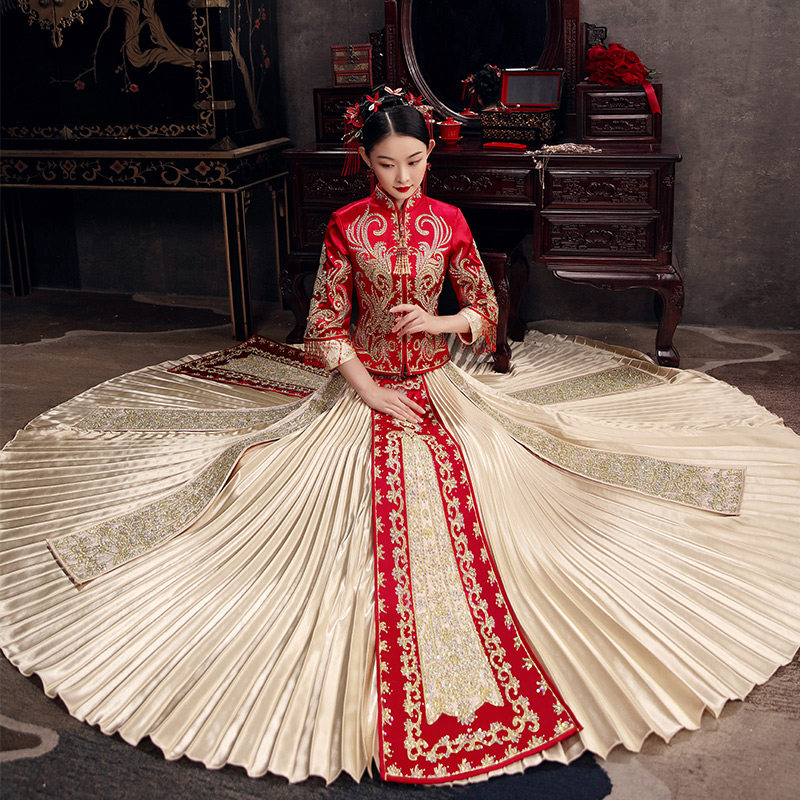 Golden Xiuhe Clothes 2022 new married girl bride Chinese wedding dress and service Long Fengfeng special Xiuhe