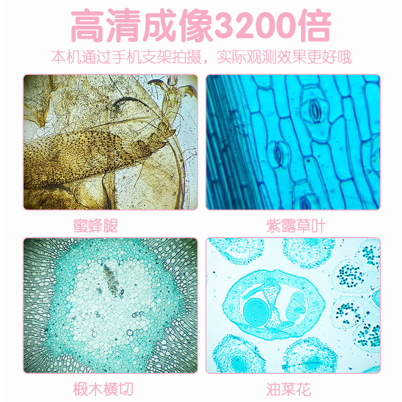 Optical microscope children's science professional biological experiment 10,000 times 3200 times home elementary school kindergarten mobile phone to see bacteria Christmas New Year's Day New Year's Day creative birthday gifts to children