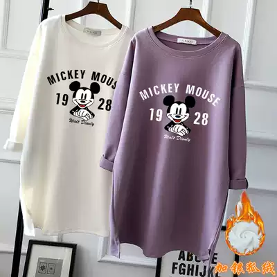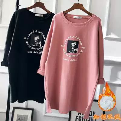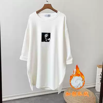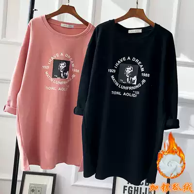 2021 pure cotton long-sleeved t-shirt women's plus velvet monsoon Korean version loose ins medium and long version autumn and winter large size bottoming shirt