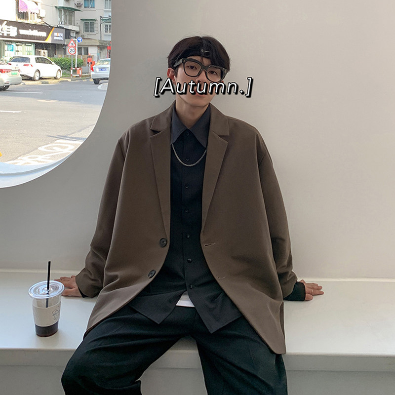 @Hong Kong Tsai literary male summer suit jacket Hong Kong wind day department trend loose leisure suit British wind retro