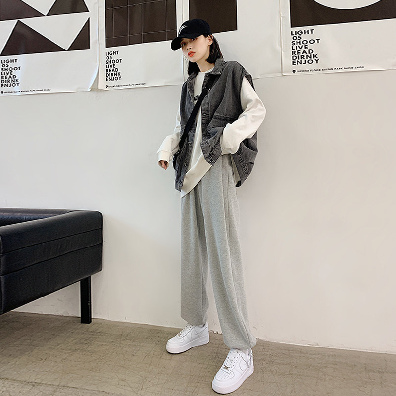 Gray sweatpants women's summer loose-legged pants spring and autumn white small ins tide thin wide-leg casual sweatpants