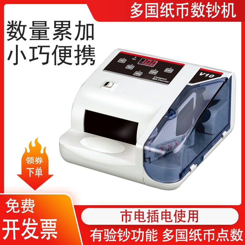 V30 Small Mini Smart Portable Multi-National Currency Money Counter Plug in and Battery Counting Machine Mains + Battery Mini Small Money Counter Handheld Banknote