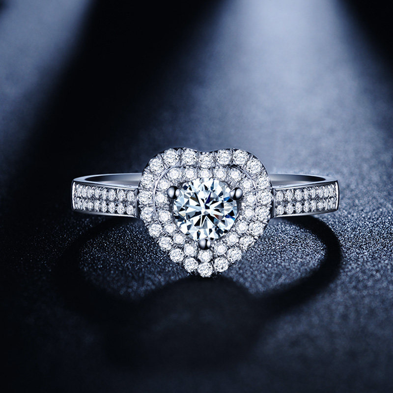 Joy Diamond White 18K Gold Ring Woman Elegant Heart-shaped Sweet Diamond Ring Fashion Courting Wedding Ring Engagement Wedding Ring Send Girlfriend
