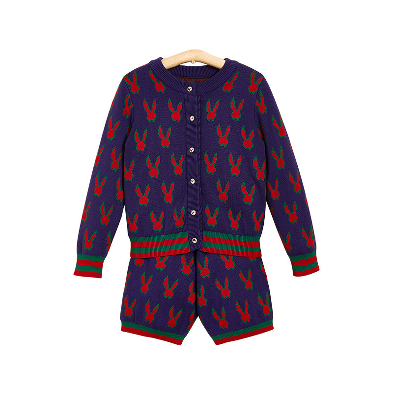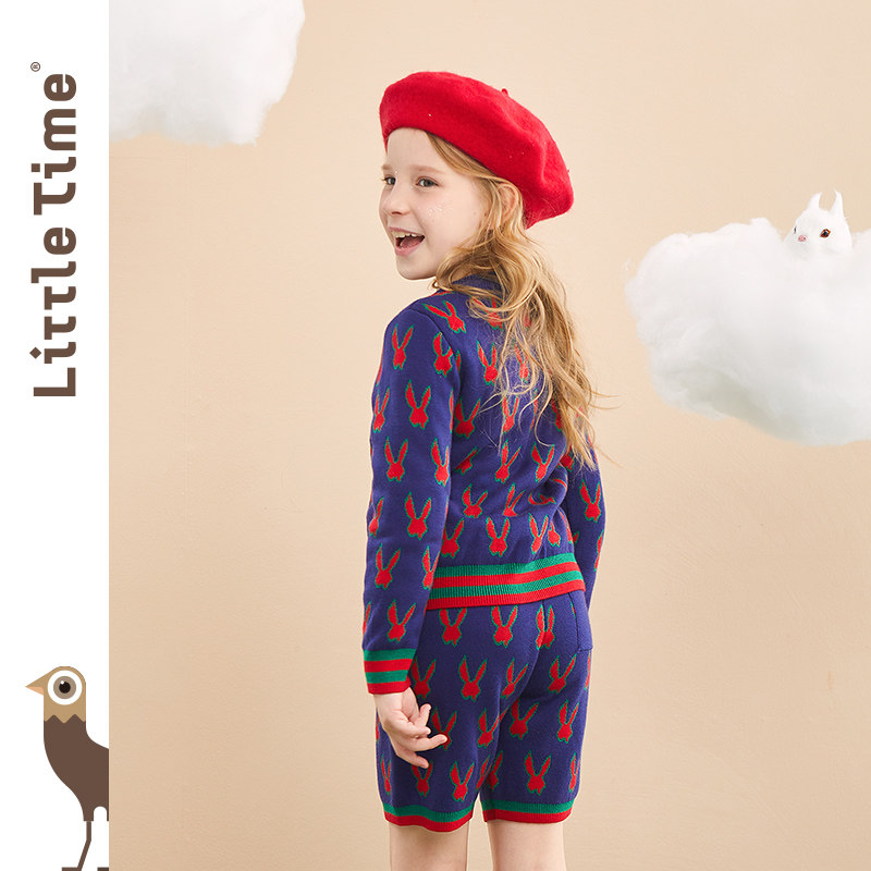 littletime children's clothing original rabbit suit 2022 winter new soft blue sweater two-piece set