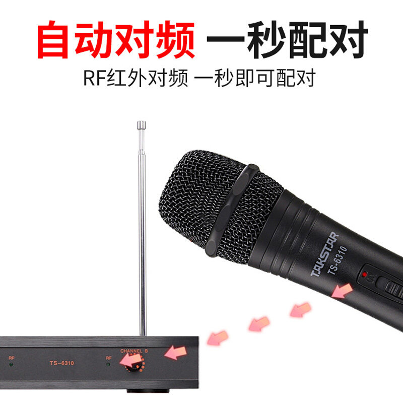To Win TS-6310 Mighty Wireless Mic 1 Drag Two Home Singing K Song Conference Stage Performance Professional microphone VHF microphone 50 m Long distance (373)