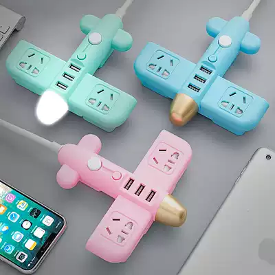 Creative mini multi-function socket row plug board extension cable with USB charging household night light usb plug row wiring board