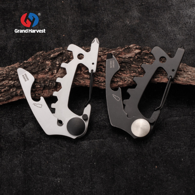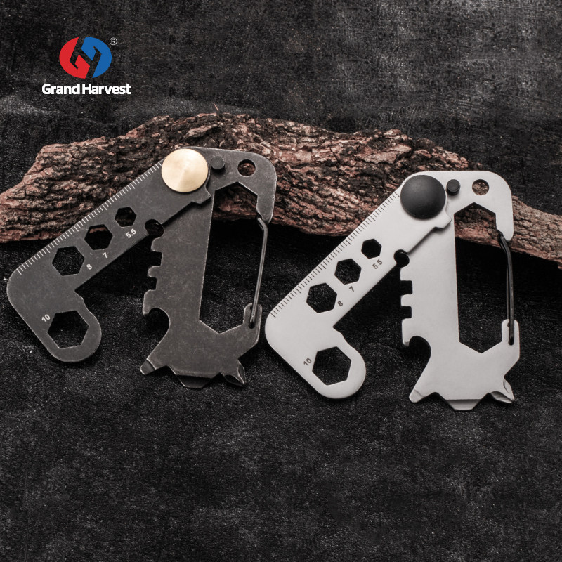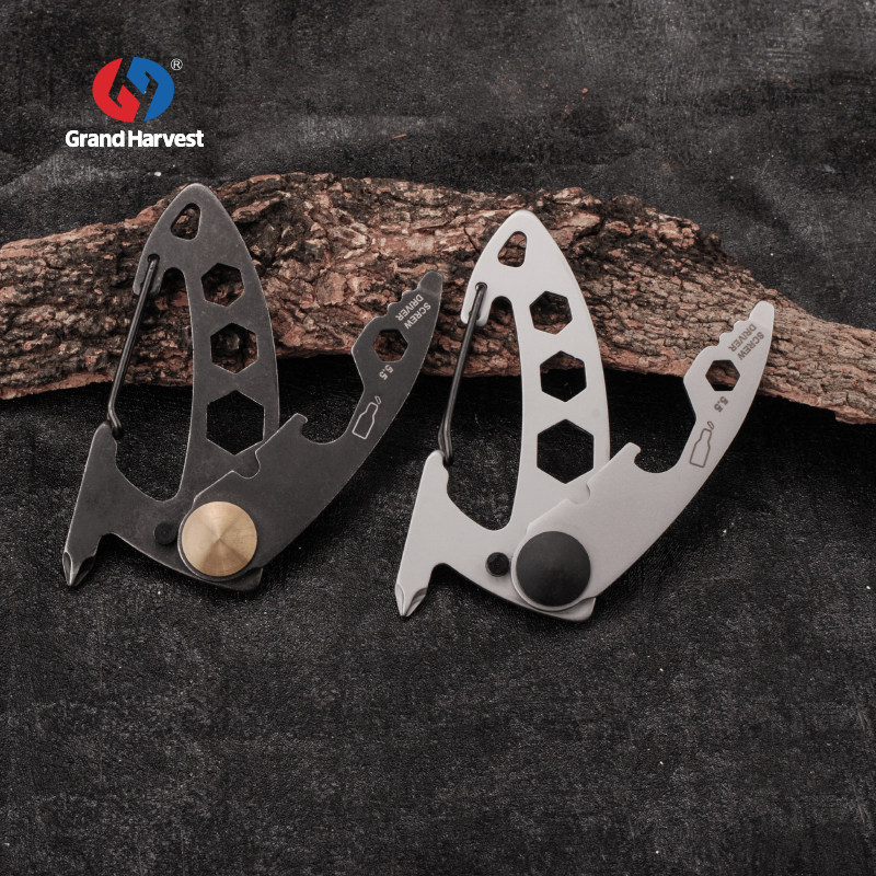 Hongfeng multi-functional mountaineering buckle bottle opener cutting rope wrench outdoor portable EDC gadget card key chain pendant
