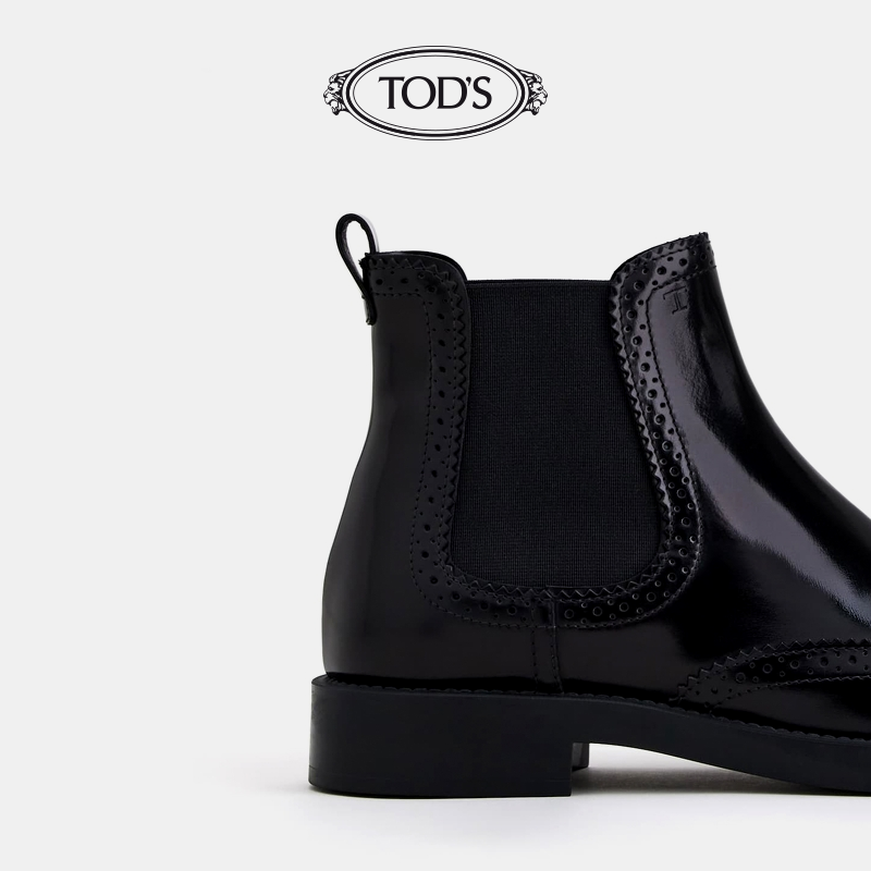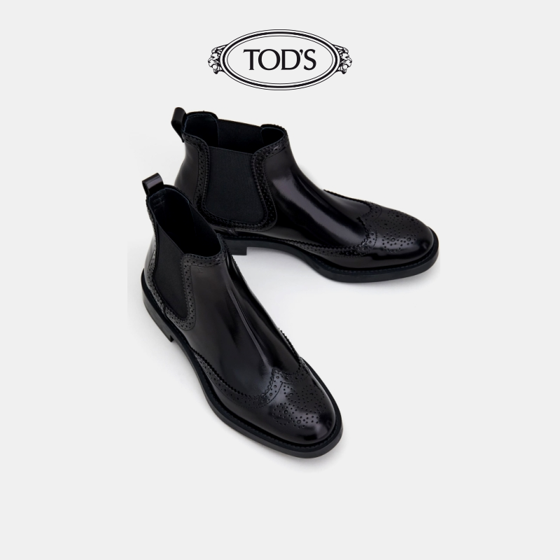 TODS Official Women's Leather Ankle Boots Carved Chelsea Boots Short Boots Women's Shoes