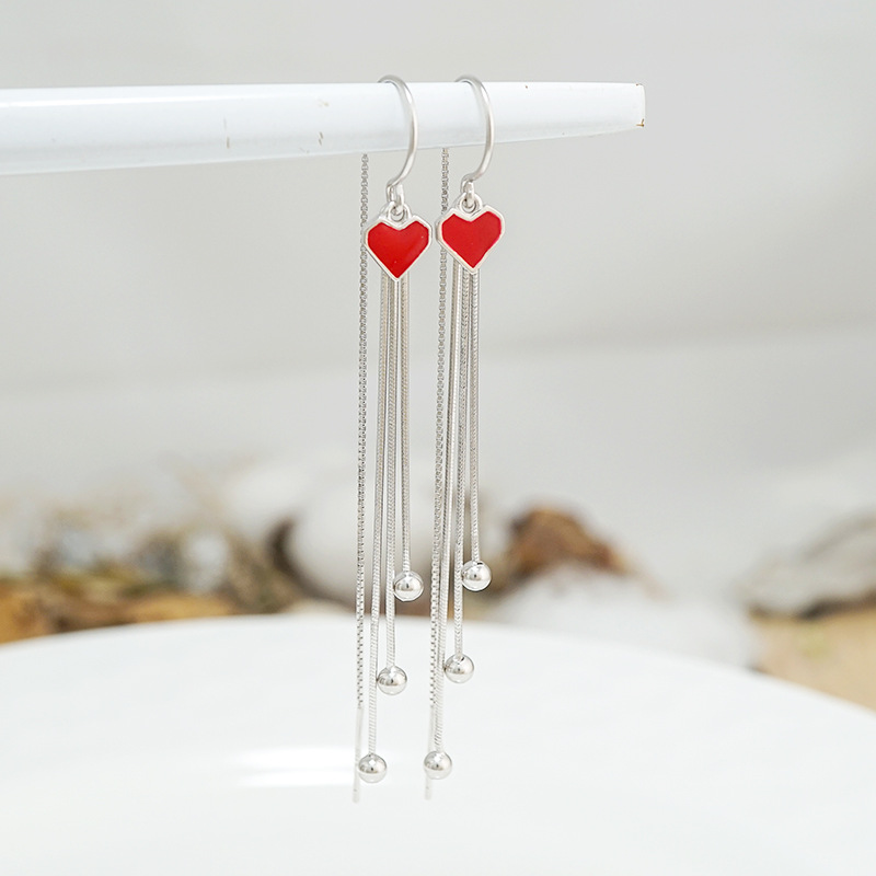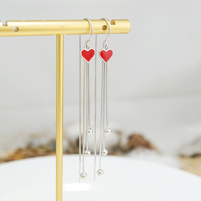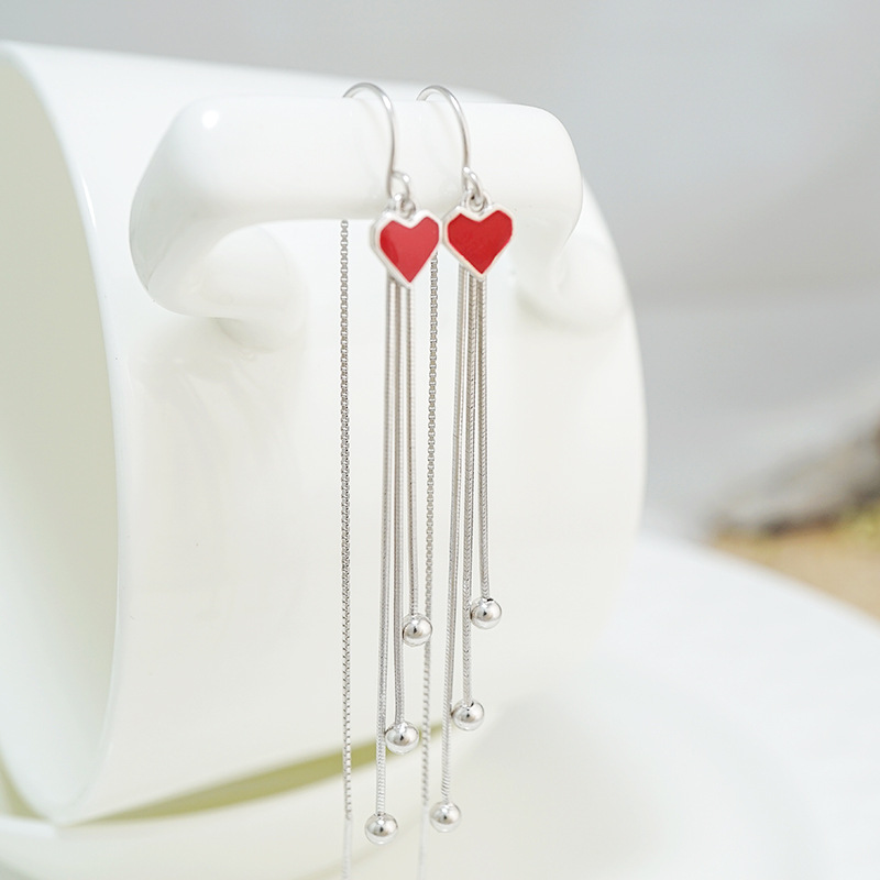 Pure Silver Earrings Woman Long Version Love Temperament Net Red 2020 New Tide Korea Fashion Silver Needle Streaming Suear Ornaments