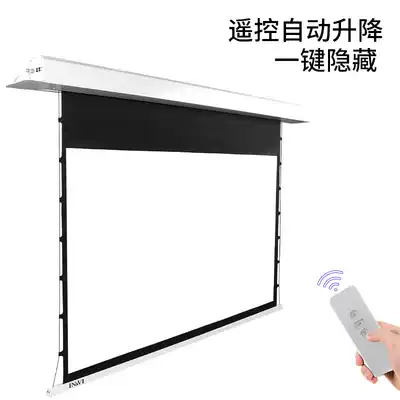 English micro embedded ceiling curtain projector screen cloth home 4K 3D ultra high definition voice remote control lifting 100 120 inch Nano light anti light electric cable hidden suspension ceiling curtain