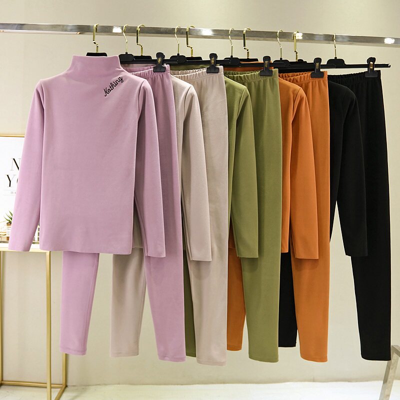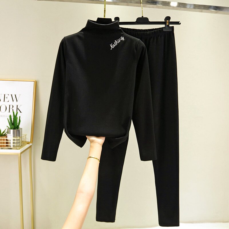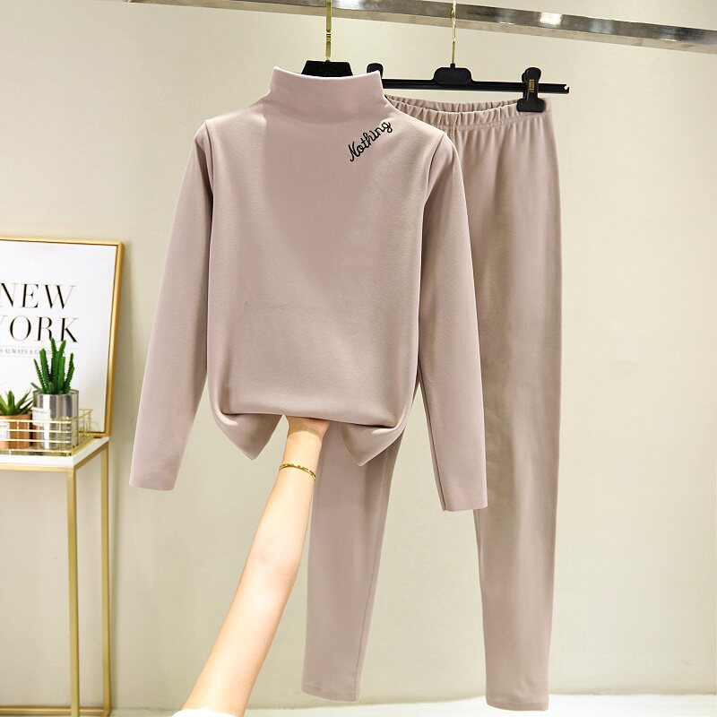 De-velvet spontaneous hot long-sleeved inner dress women's large size autumn and winter semi-high collar warm inner jacket plus velvet sanitary pants top