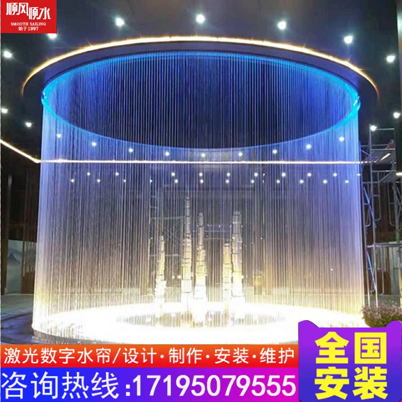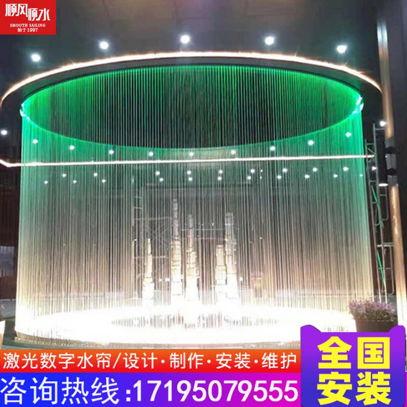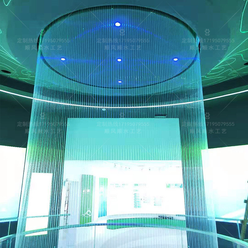 Pull line water curtain flowing water sample house display center indoor water landscape modern water system creative light luxury water curtain wall fiber optic water curtain scene