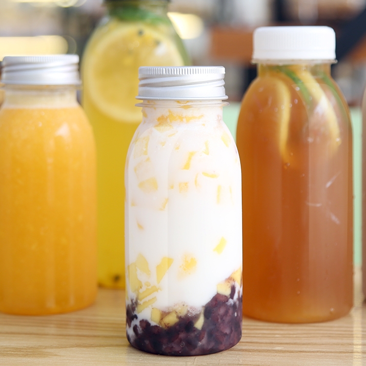 Beverage cup disposable transparent plastic bottle with lid pet food grade delivery packaged enzyme juice milk tea bottle
