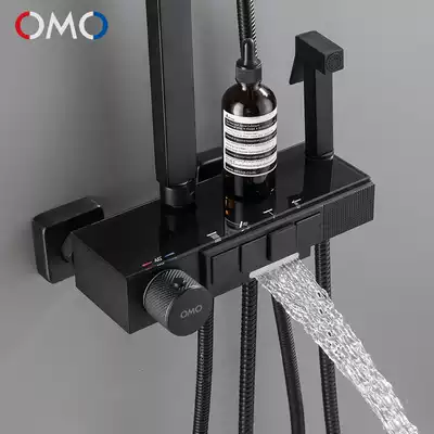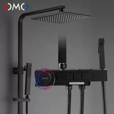 OMO thermostatic shower black shower shower kit home bathroom bathroom shower head full copper button shower