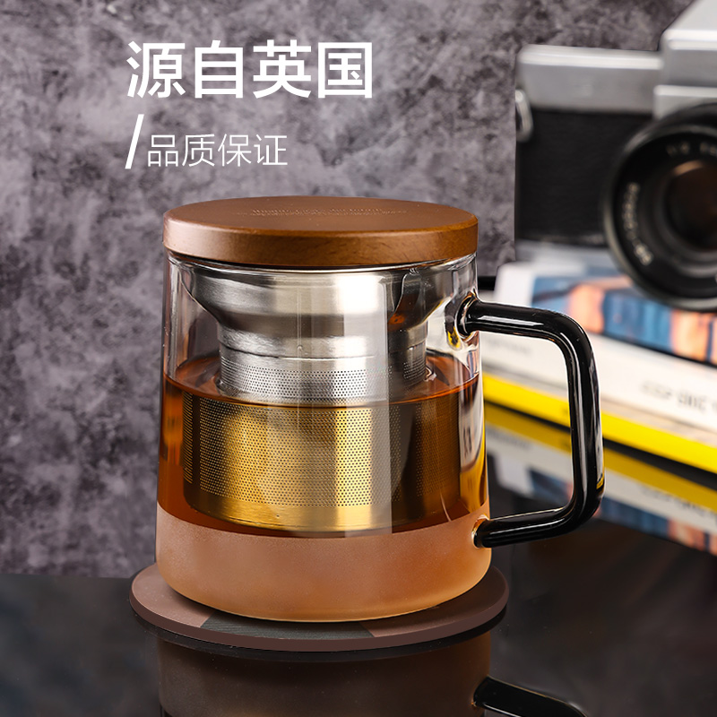 UK LITTLERAINDROP GLASS CUP WITH HANDLE OFFICE CUP TEA WATER SEPARATION WATER CUP WITH LID HOUSEHOLD TEACUP