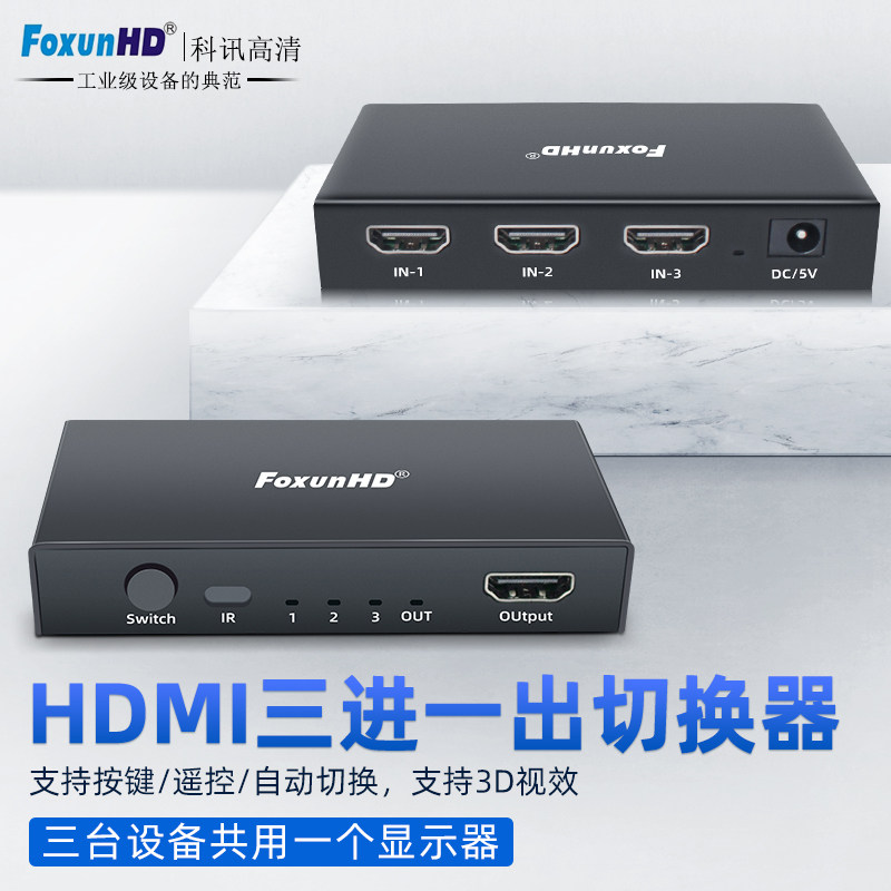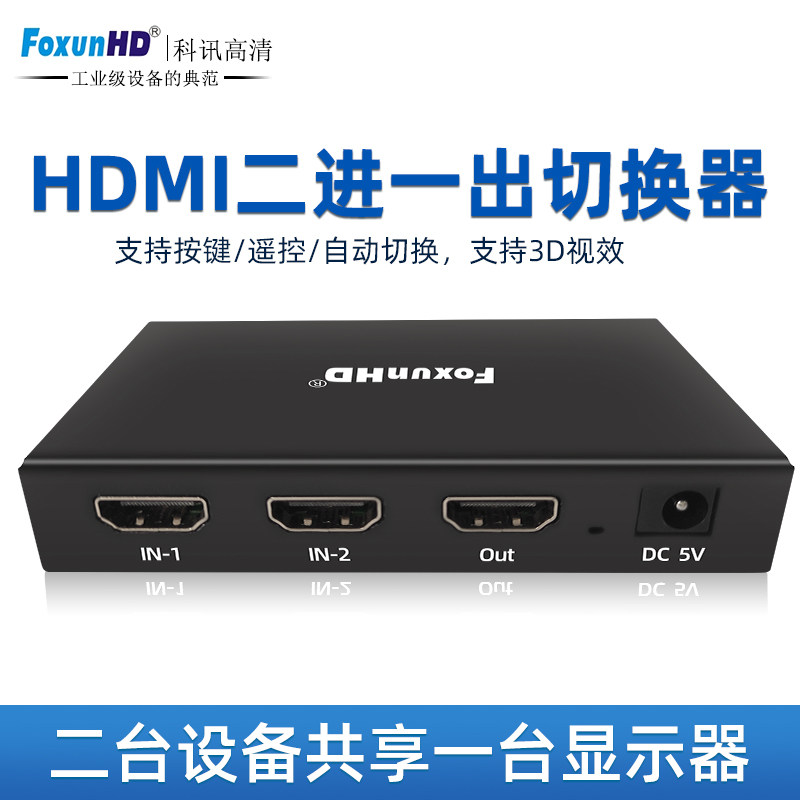 HDMI switcher two-in-out audio-video conversion 4K high-definition with remote control TV box monitoring automatic switching