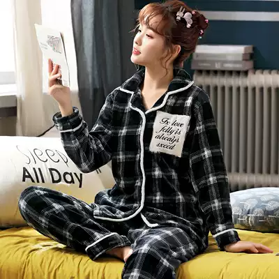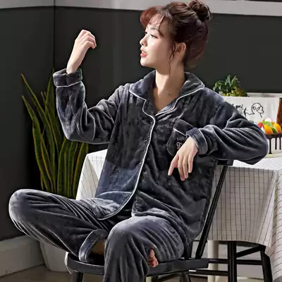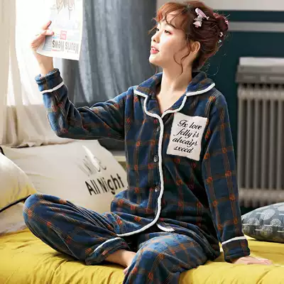 Winter coral velvet women's pajamas plus velvet thick flannel can be worn outside heating clothes, spring, autumn and winter plus size