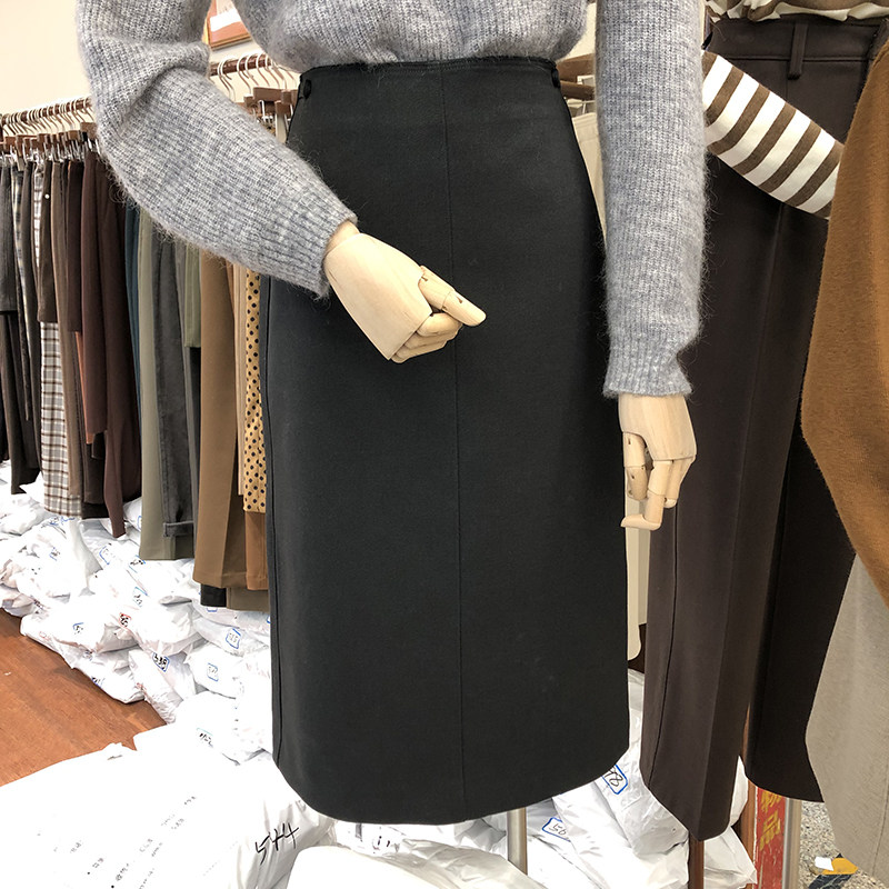 2022 autumn and winter new skirt women's A-line high-waisted slim one-step skirt mid-length version slit bag hip-length skirt