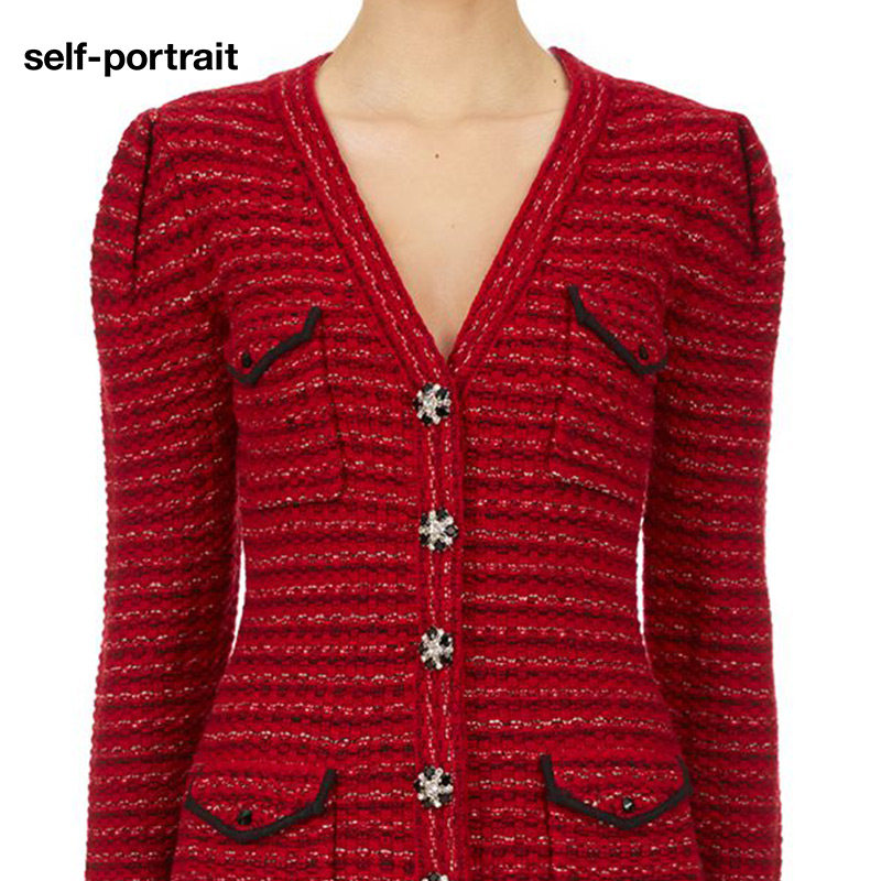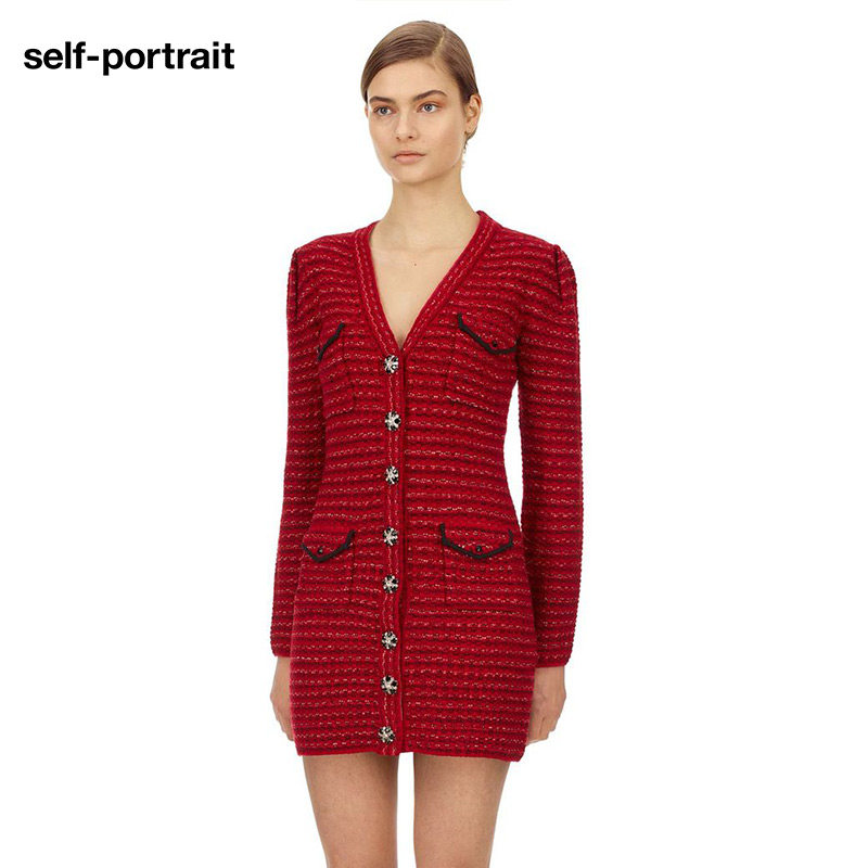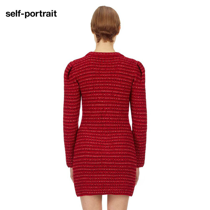self-portrait Autumn/Winter Red New Year Slim Knit Dress Sweater Dress