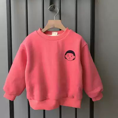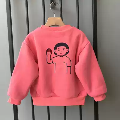 Children's autumn and winter plus velvet plus thick cotton T Korean version of men's and women's children's clothing 2021 new Western style tide long-sleeved inner jacket top