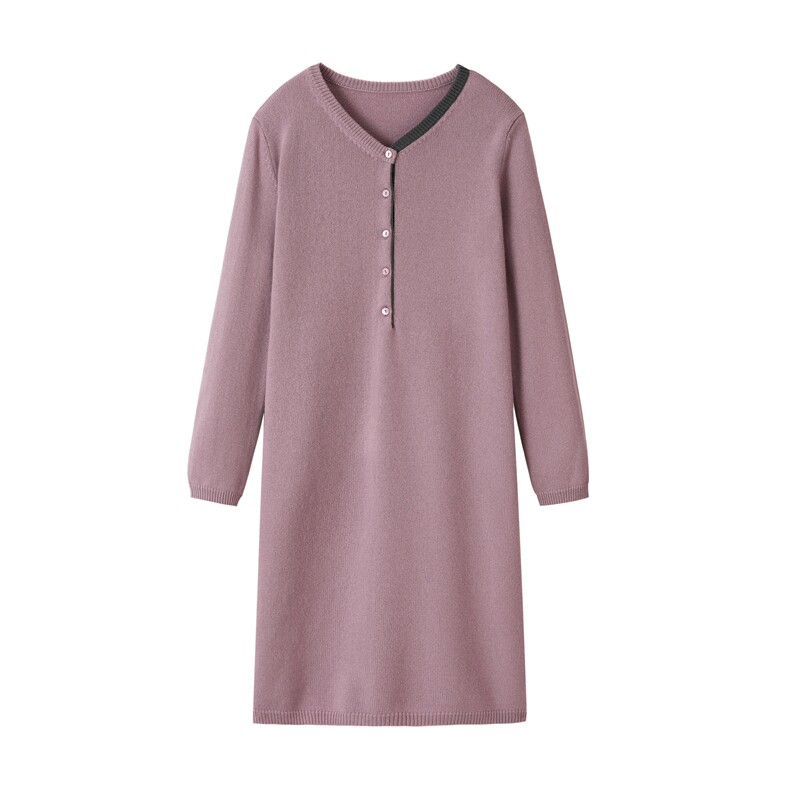 Fu Xianglin V collar 8-pin thickened collage female long version of the dress 100% Mountain cashmere in the long version of the cashmere foreign dress