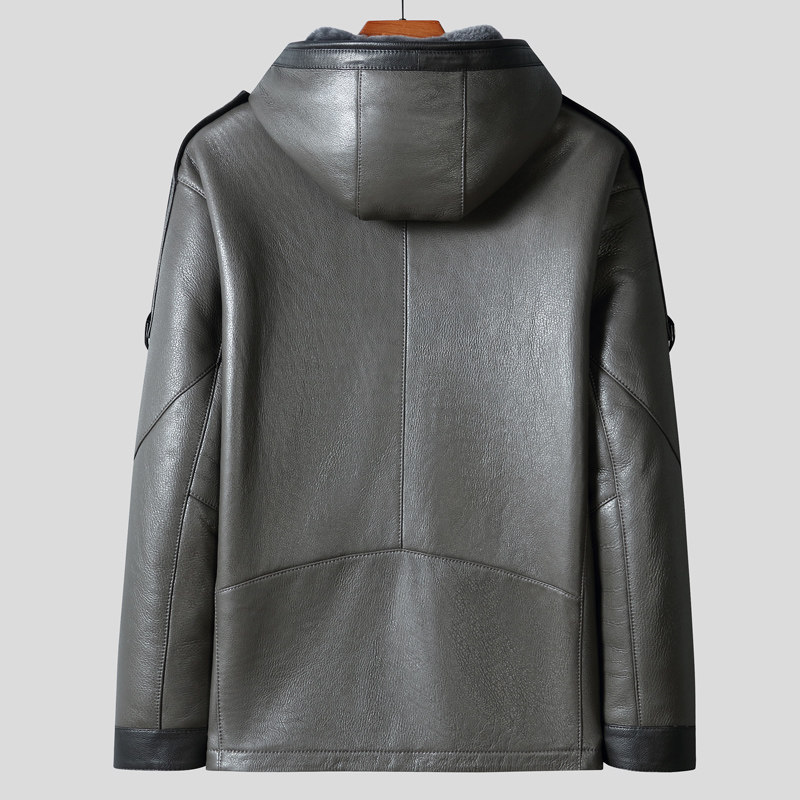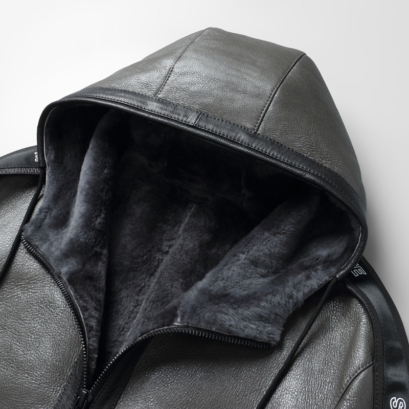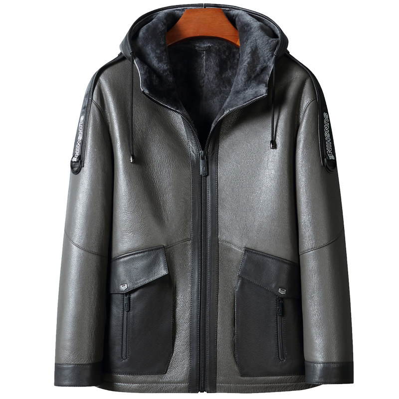 Winter new Haining leather leather jacket men's short fur jacket original ecological hooded leather jacket