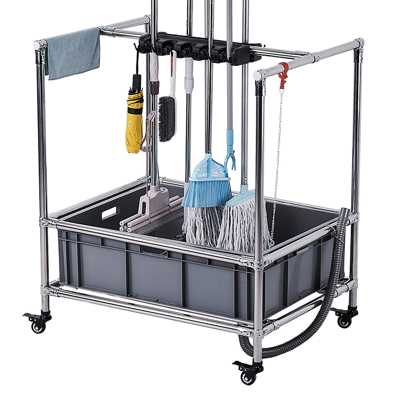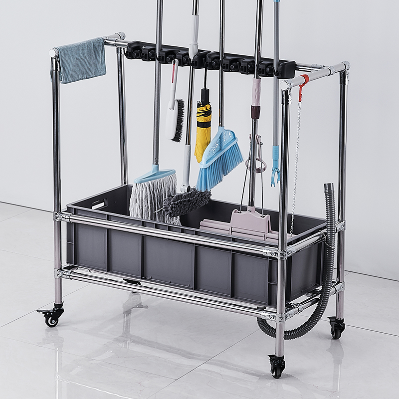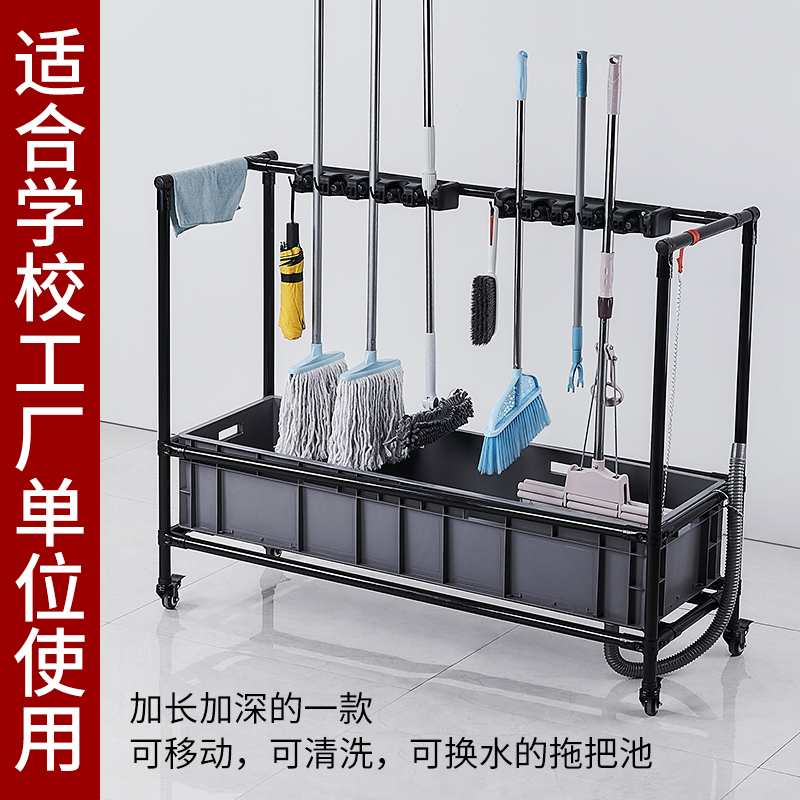 Stainless steel movable mop pool floor-to-ceiling mop pier cloth broom shelf public school factory exclusive