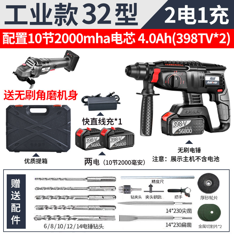 Brushless rechargeable electric hammer drill electric pick three use high power concrete lithium power wireless industrial impact electric drill inflatable drill