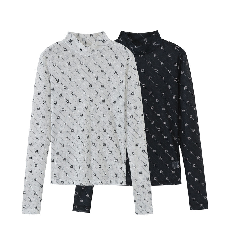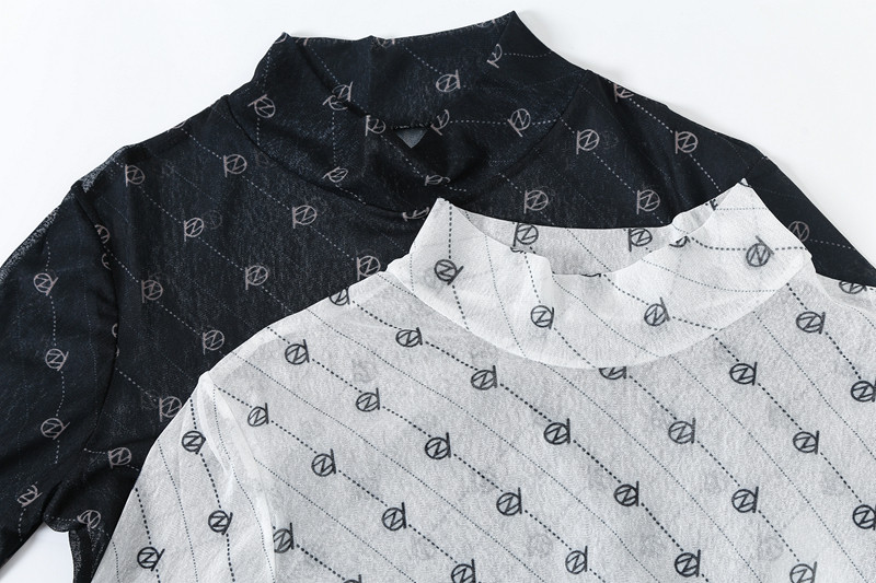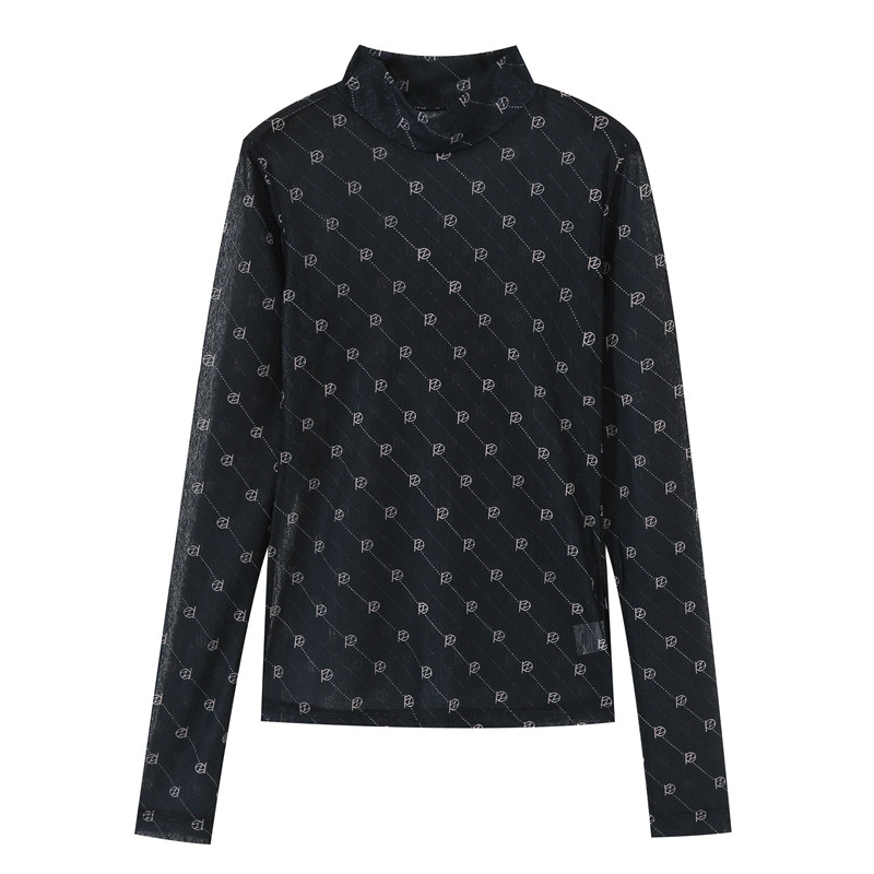 CWJ2020 autumn new all-match thin letter printing semi-high collar casual long-sleeved slightly transparent bottoming shirt T-shirt women's thin