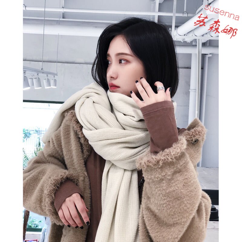 Korean version of solid color knitted wool scarf women's autumn and winter thickened warm student soft sister collar men's wild shawl tide