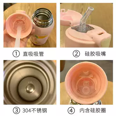 Children's thermos cup Primary School students anti-fall Net red water cup with straw Cute kindergarten baby kettle out to carry