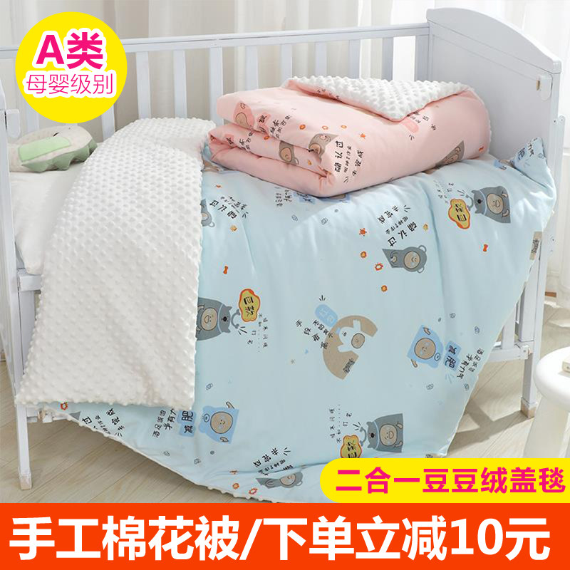 Baby quilt pure cotton in autumn and winter thickening baby bean blanket newborn children's cotton is universally used in kindergarten four seasons
