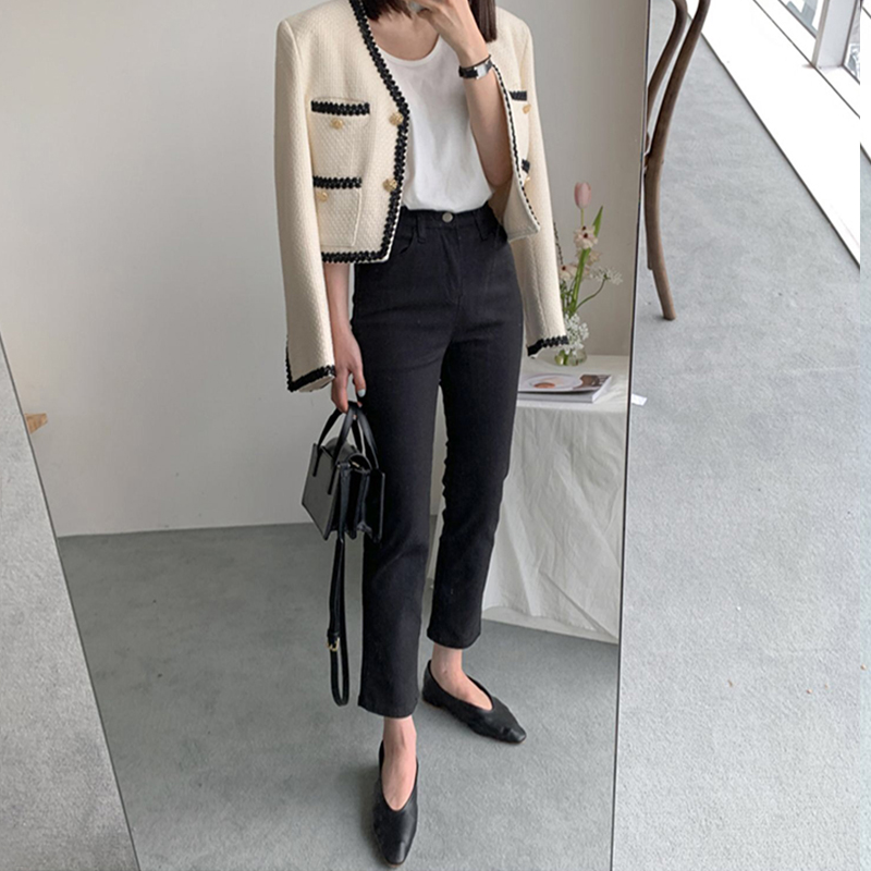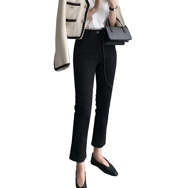 Black jeans women straight loose 2020 autumn new high waist high thin cigarette tube nine points pants tide