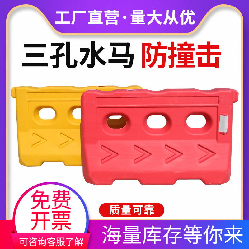 New material blow-molded three-hole water horse rotomolding anti-collision bucket 1 5 meters high water injection fence 1 8 meters municipal construction fence