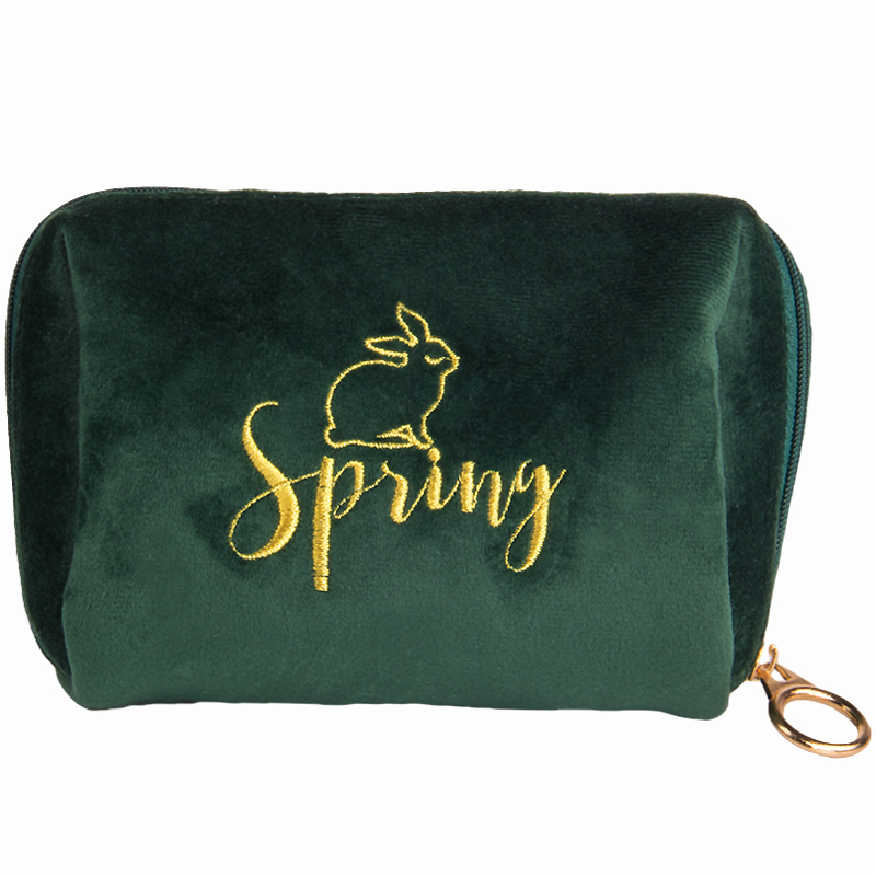 A velvet makeup bag in a velvet